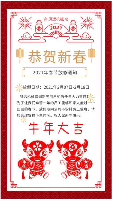 鳳遠(yuǎn)機(jī)械恭祝大家新年快樂!牛年大吉!